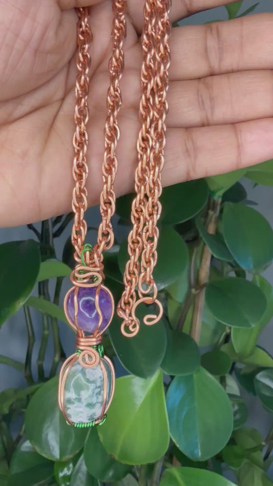 Leopard Skin Jasper & Aragonite Chunky Chain and Bracelet Set