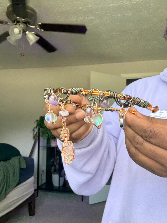 Rose Quartz, Citrine & Jade Charm Ear Cuff