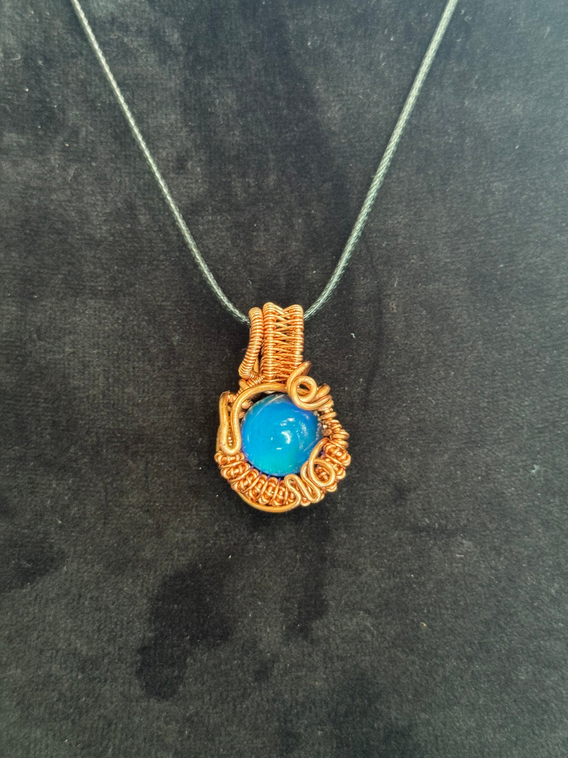 Handcrafted, tarnish-resistant Moonstone glass. Will arrive on bare copper ball chain. The ball chain necklace will tarnish over time, the pendant is tarnish resistant and will hold its shine for much longer.